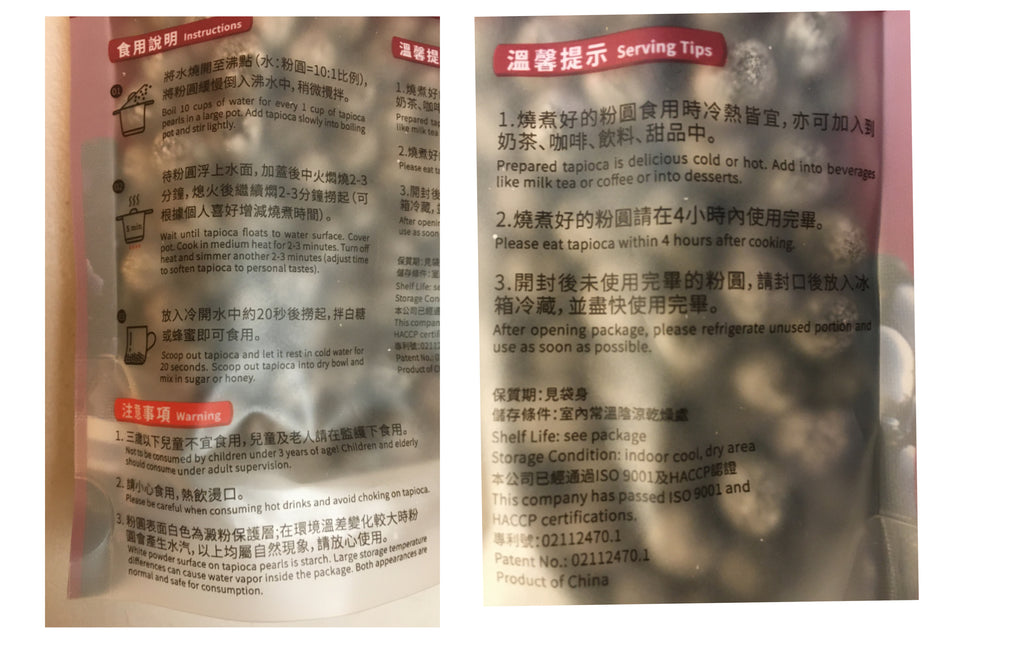• 2 bags WuFu Yuan Black Tapioca Pearls, 8.8 oz each